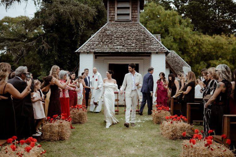 Cuando terminó la ceremonia los novios salieron al son de Sal de Ceratti.